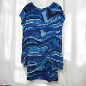 Keywords: MSK, tunic, women, XL, blue, swirl print, abstract, asymmetrical, overlay, polyester, spandex, fashion, casual