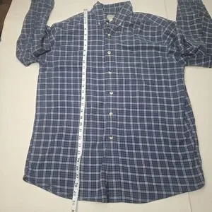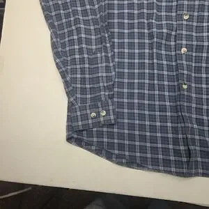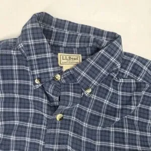 L.L. Bean Men Flannel Plaid Long Sleeve Button-Down Shirt Blue Size Medium