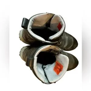 Pre owned condition - the right boot appears to have a large gash on the backside ( see pictures closely) boots still functional