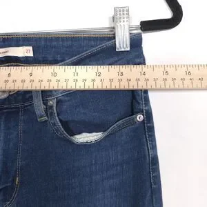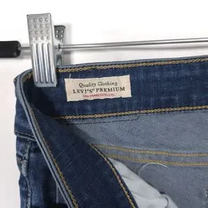 The LEVIS PREMIUM Womens Jeans 711 Skinny Size 27 Distressed are a stylish and versatile pair of jeans for women. Made from a blend of polyester, spandex, and cotton denim, these mid-rise jeans feature a zip and button closure, with a solid blue color and distressed detailing for added flair. The skinny style offers a flattering fit, while the comfort and stretch features make them perfect for all seasons. With a classic Levi's brand and pockets for convenience, these jeans are a must-have addition to any woman's wardrobe.