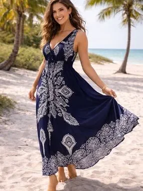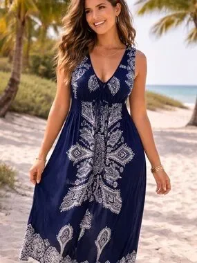 Jessica Taylor 2XL Navy Paisley Maxi Dress | Plus Size Boho Flowy Dress