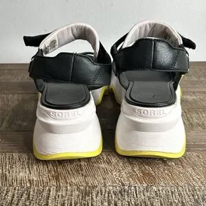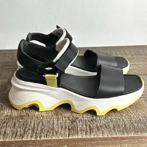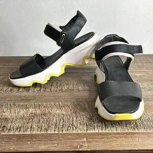 Sorel Kinetic Impact Y Strap High Sandals 9.5 Leather Chunky Platform Black