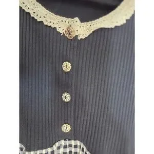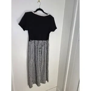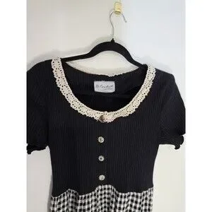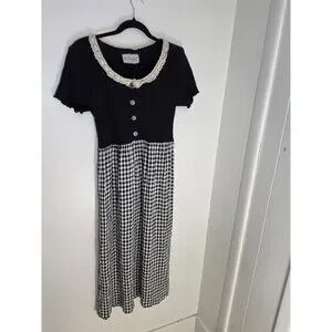 Ms. Conduct Black White Gingham A-Line Long Dress Lace Collar Decorative Buttons