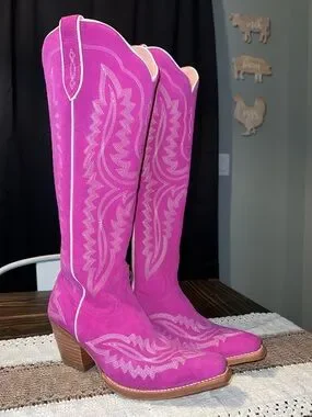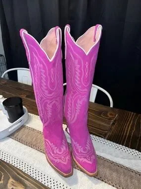 Tall suede western boots in vivid hot pink. Limited edition and no longer sold by Ariat. Brand new, never worn out of the house.