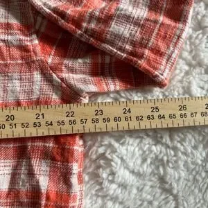 American Eagle Women's M Orange White Plaid Cropped Flannel Button Down Shirt
