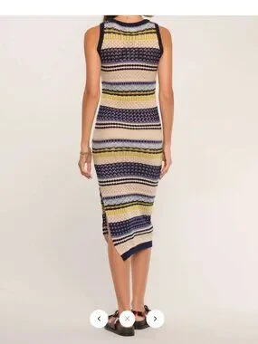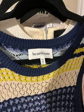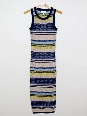Beautiful Heartloom Gimlet dress in the Marina multi-color stripe, size XS. This crochet midi dress features a lightweight pointelle knit design that’s perfect for warm-weather styling.