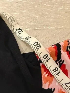 Black V-neck maxi dress with short sleeves. Bold red and blue floral motifs with cream accents. Flowy silhouette creates movement. Vibrant and feminine style. Has pockets!