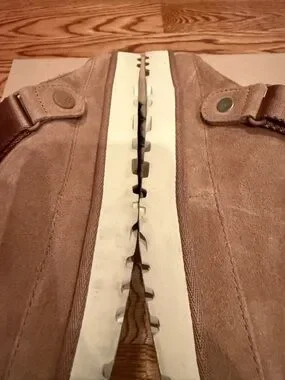 Comfortable kids slip-on clogs in soft chestnut suede. Adjustable strap for a secure fit. Cushioned footbed for all-day wear. Durable rubber outsole for traction.