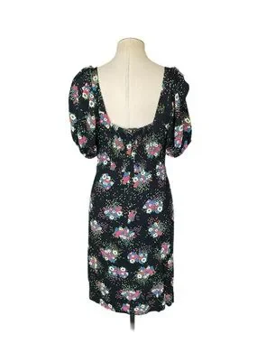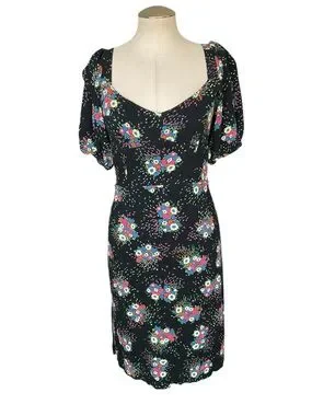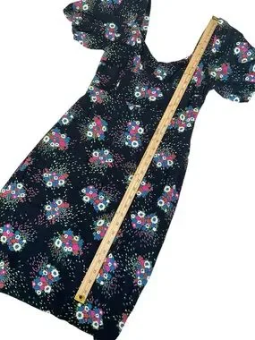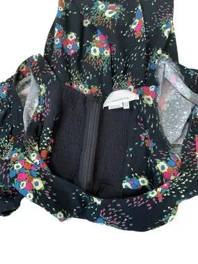Anthropologie Floral Dress Puff Sleeve Black Mini Fit Flare Size 8