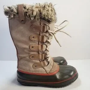 Sorel Joan of Arctic Waterproof Faux Fur Brown Lace Up Tall Boots size 8