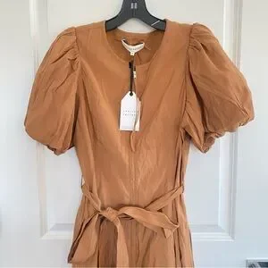 Anthropologie English Factory Short-Sleeve Tie-Waist Midi Dress Sz M NWT