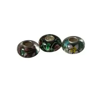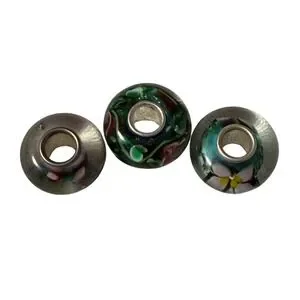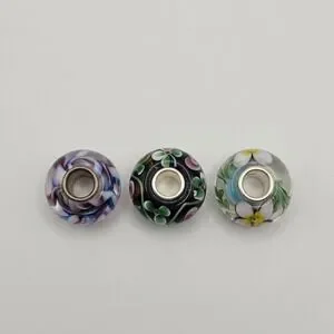 Artistic 3pc Floral Lampwork Glass European Charm Multicolor Silver Tone Core
