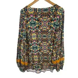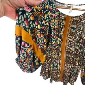 Matilda Jane women's Long Sleeve peasant Blouse top Sz M floral Boho Gypsy