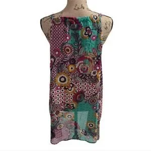 Umgee Floral Tropical Crochet Trim Tank Tunic Top Plus Size 1X