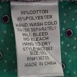 Material: 55% Cotton, 45% Polyester