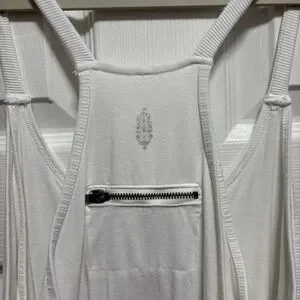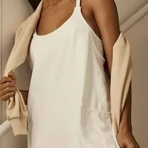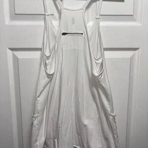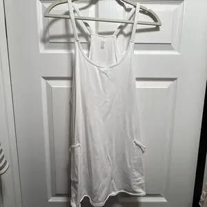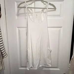 Effortless white racerback tank dress with a relaxed fit. Lightweight fabric keeps you cool and comfortable. Simple design with subtle pocket details for easy styling. Perfect as a standalone top or layered piece.