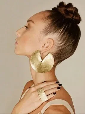 Gold Disc Statement Earrings - Women Jewelry R 398