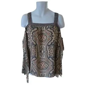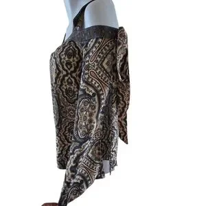 BCBGMaxAzria Brown Patterned Off-Shoulder Blouse
