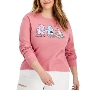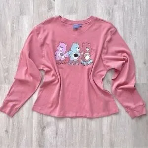 Size 1X pink long sleeve top with Care Bears graphic print. Waffle knit texture. New with tags.