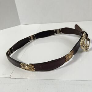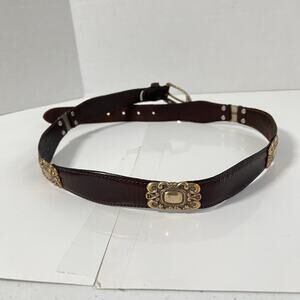 Fossil Brown Leather Belt Western Concho Womens XL Silver Gold 90’s Y2K