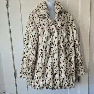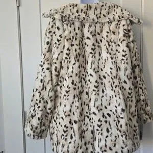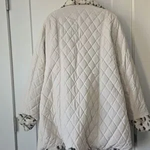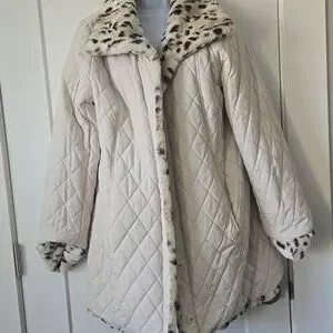 reversible 2 in 1 jacket. Chic and cozy faux fur teddy with leopard print on one side, a cream color quilted jacket on the other side. Comes with detachable hood. Perfect for any occasion.