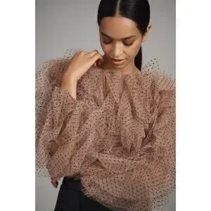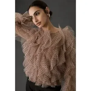 Anthropologie Dolan Womens XL Left Coast Mesh Ruffle Top Nude Polka Dot Romantic