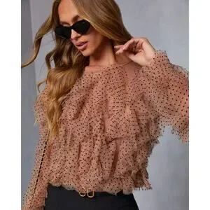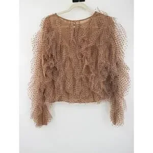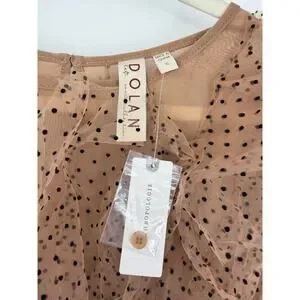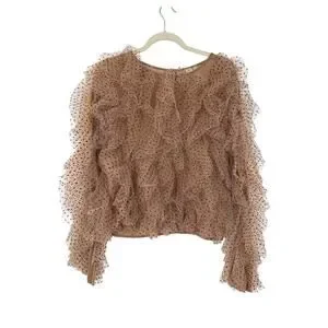 Anthropologie Dolan Womens XL Dolan Left Coast Mesh Ruffle Top Nude Polka Dot