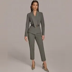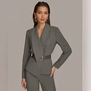 NWT Donna Karan Women’s Belted Pinstripe Jacket. Size 8. Arctic Frost/Ivory
