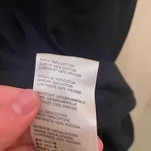 Relaxed black pullover with contrasting mauve long sleeves. Lace-up ring and tie details at sleeve cuffs. Crew neckline and casual fit. Easy to style for everyday wear.