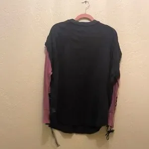 Free People Black Pullover with Mauve Lace-Up Sleeves