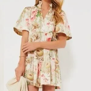 Breezy and feminine, this Tuckernuck Sun Faded Floral Crawford Dress features oversized flutter sleeves, ruffle detailing, and a swing silhouette. A flattering mini dress perfect for brunches, vacations, or summer garden parties.