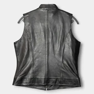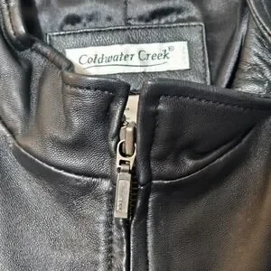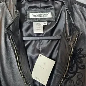 Coldwater Creek Leather Floral Embroidered Zip Up Vest Black M Western Biker NWT