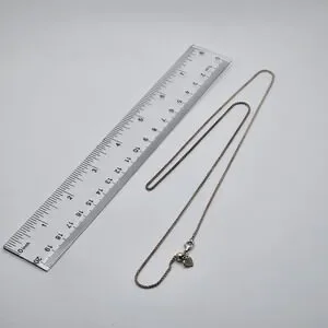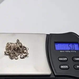 This Sterling Silver 925 Chain Necklace is a classic and versatile piece of jewelry. Crafted with a rope style chain, this necklace is made of high quality 925 silver. The sleek silver color adds a touch of elegance to any outfit, making it a timeless accessory for any occasion. At 5 grams, this necklace is substantial yet delicate, perfect for everyday wear or special occasions. Stamped.