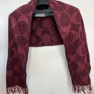 Authentic Coach Red Signature Logo Wool Scarf 10" X 70"