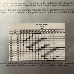 NWT Authentic Christian Dior tights. Size 1. Brand new never worn. Still in its original packaging as it has never opened or taken out of its original packaging. All the information like the sizing chart is located on the packaging as you can see in the photos. I only found a couple of these for sale online and they were all over $30 so that will reflect the price. But open to offers!