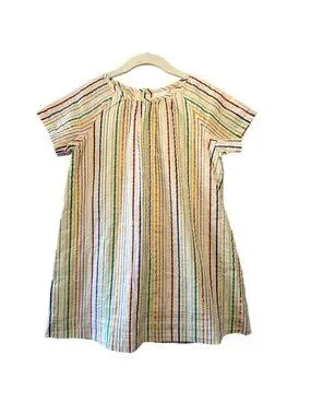 Bright and fun Hanna Andersson metallic striped dress. Features colorful rainbow stripes with subtle shimmer - perfect for parties, holidays, or everyday sparkle.