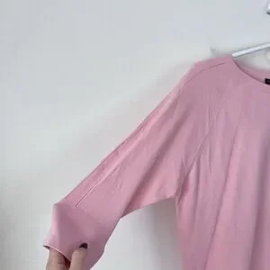 Beautiful Talbots lightweight knit sweater in a soft blush pink shade. Features flattering raglan sleeves, subtle vertical knit detailing, and a classic crew neckline. Easy, polished piece that works for workwear or casual outfits. Soft hand feel and breathable fabric, perfect for spring and layering.