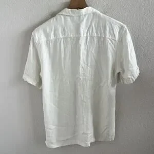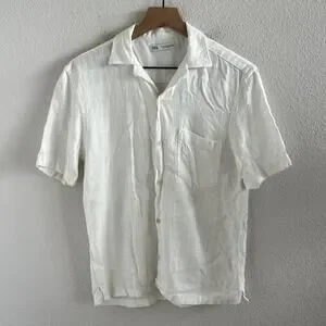 Zara Button Front Collar Textured Linen Blend Top Blouse Shirt Medium