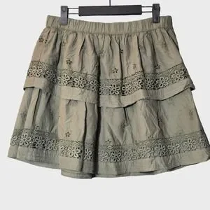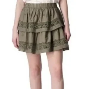 Lucky Brand Eyelet Lace Tiered Mini Skirt Cotton Green M Boho Cottagecore NWT