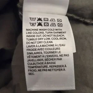 Care instructions: MACHINE WASH COLD WITH LIKE COLORS, TURN GARMENT INSIDE OUT, DO NOT BLEACH, TUMBLE DRY LOW, COOL IRON, DO NOT DRY CLEAN.
