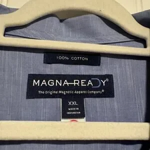Magna Ready Blue Short Sleeve Button Up Stress Free Shirting Mens XXL