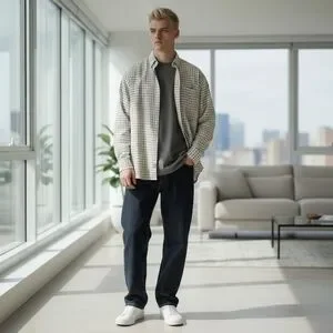 Elevate your style with this classic cream checkered shirt. Perfect for any occasion, it offers a timeless look and comfortable fit.