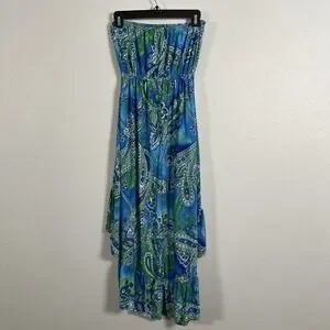 Cristina Love Blue Green Paisley Strapless High-Low Maxi Dress Womens XL