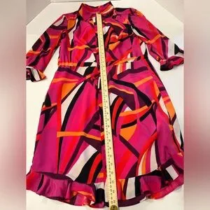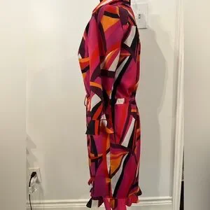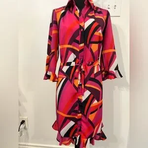 Trina Turk Nat Drawstring Shirt Dress Pink Geometric Print Size XS