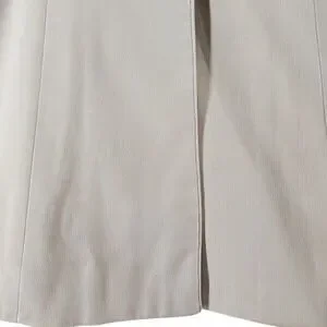 This is an authentic 90s piece with light, honest wear. Small dark marks and a faint stain at the front left side seam are present (see detail photos). Light pulls in pocket linings. These minor flaws contribute to the sought-after authentic vintage character.