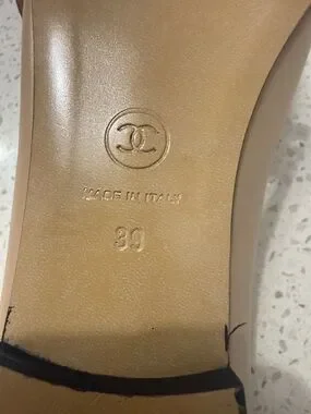 Classic CHANEL ballet flats in beige leather with a contrasting black cap-toe. Rounded toe with embossed CC logo. Delicate bow detail across the vamp. Low flat heel for everyday elegance. size 39 or 8