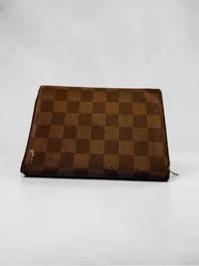Classic Louis Vuitton Victorine compact wallet in the timeless brown Damier Ebene checkered canvas. This is a perfect "everyday" luxury piece that fits into smaller handbags while still holding plenty of cards and cash.