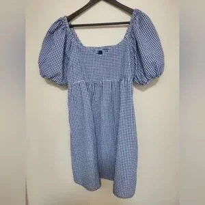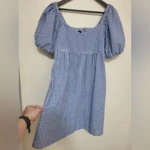 Old Navy Blue and White Gingham Puff-Sleeve Mini Dress