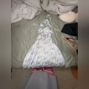 Tie-Dye Blue & White Halter Midi Dress