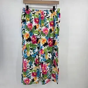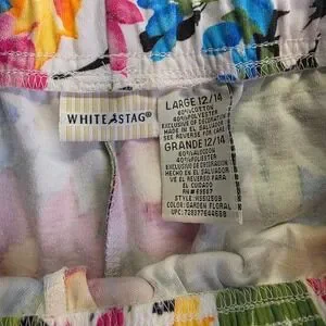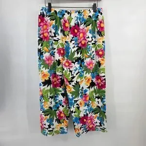 White Stag Womens Large 12/14 Garden Floral Elastic Waist Cotton Blend Pants